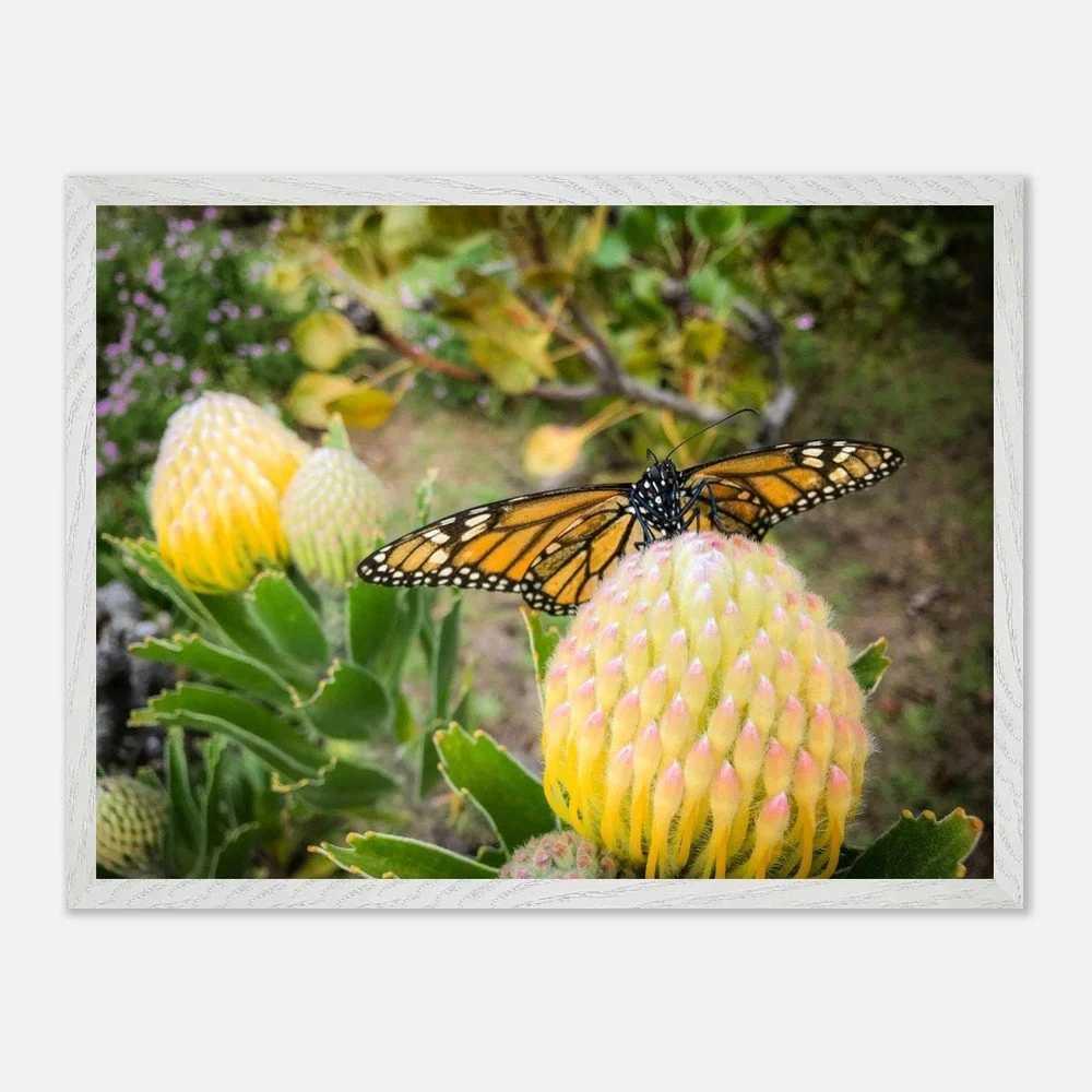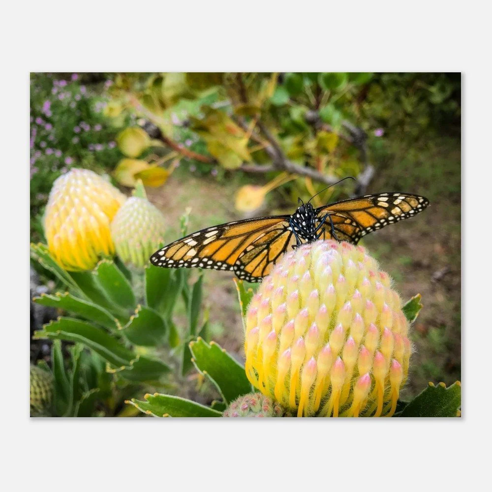 Beatrice was the butterfly that started it all. My dog Yoda found her, and upon realizing that she was flightless, I took her in and learned how to feed and care for a butterfly. She lived with us for 11 weeks, going on walks, and enjoying flowers, sunsets, and gliding from high perches. She was Maui magic embodied.