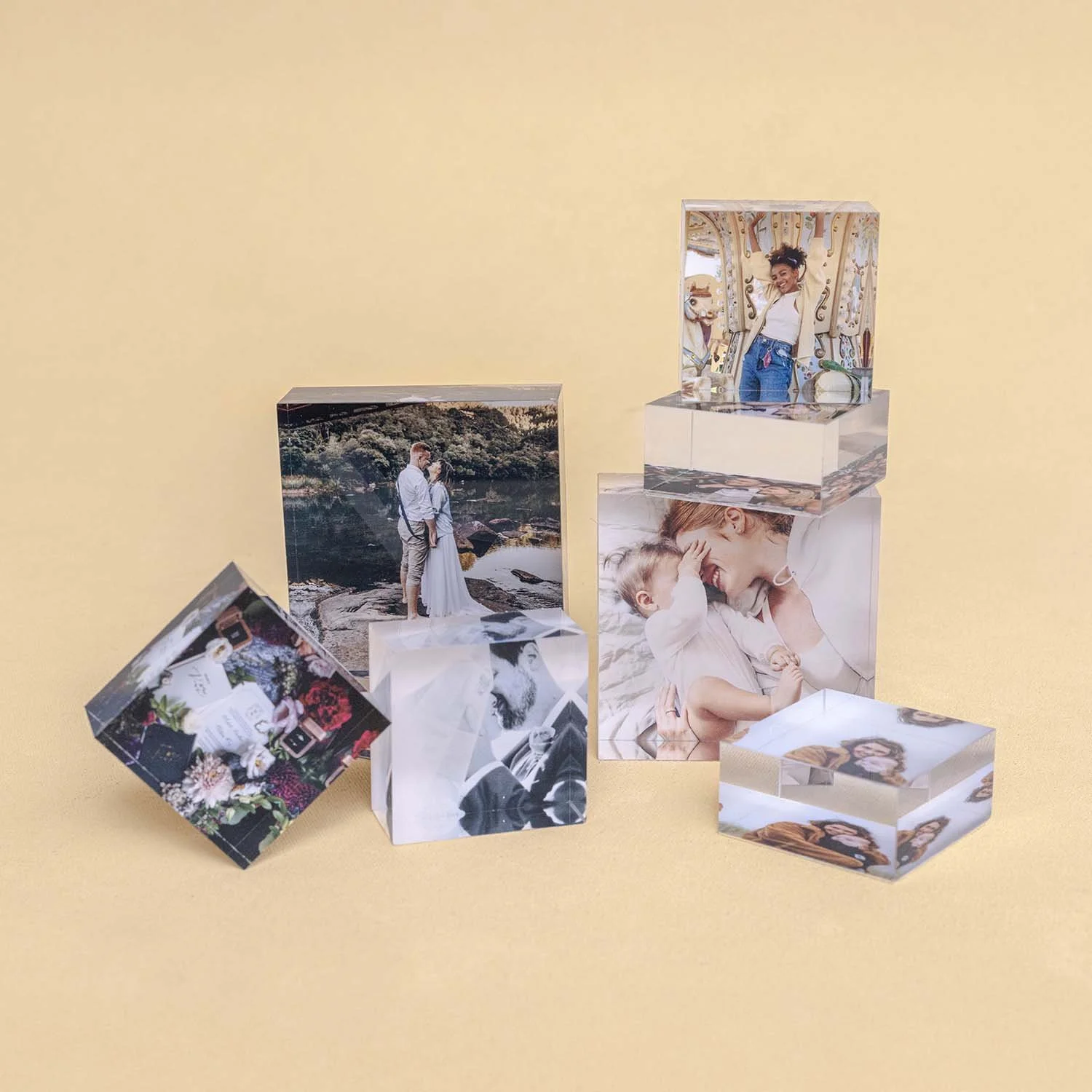 Images are flatbed printed directly on 1.125" thick, optical grade acrylic backed with subtle, metallic paper. Acrylic blocks are durable, water-resistant and easy to clean.