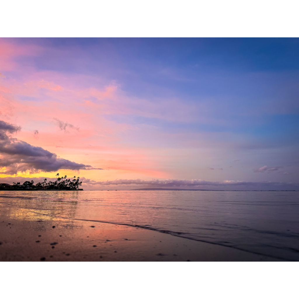 Dawn patrol at one of our favorite Maui surf spots did not reveal much for waves, but did provide this perfectly painted moment of sunrise color and smooth sea. It was worth the drive.